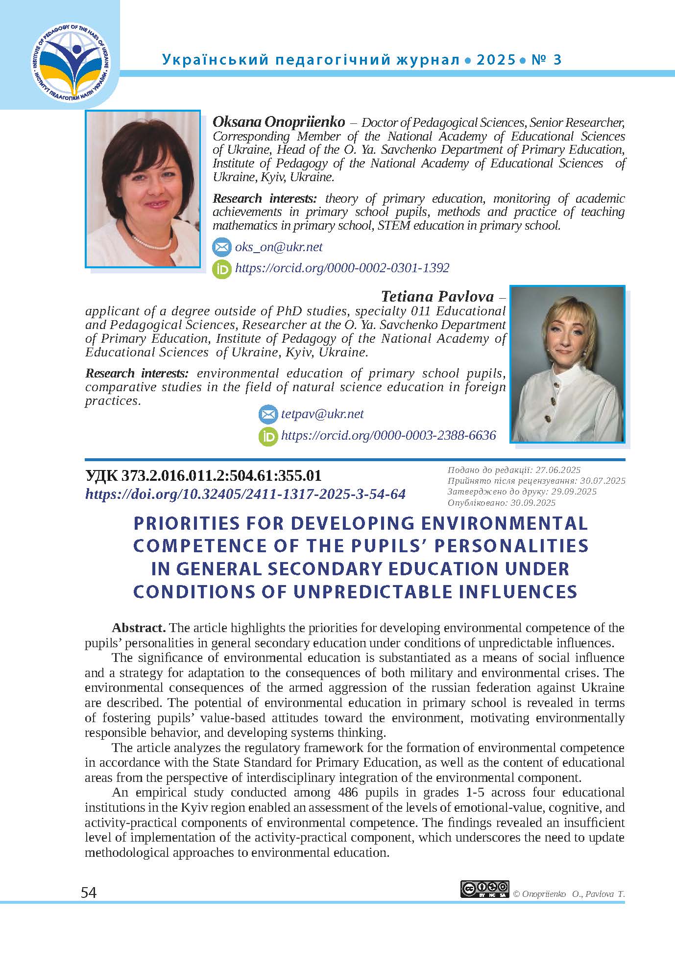 Онопрієнко, О., & Павлова, Т. (2025). ПРІОРИТЕТИ ФОРМУВАННЯ ЕКОЛОГІЧНОЇ КОМПЕТЕНТНОСТІ ОСОБИСТОСТІ УЧНЯ ЗАКЛАДУ ЗАГАЛЬНОЇ СЕРЕДНЬОЇ ОСВІТИ В УМОВАХ НЕПРОГНОЗОВАНИХ ВПЛИВІВ. Український Педагогічний журнал, (3), 54–64. https://doi.org/10.32405/2411-1317-2025-3-54-64