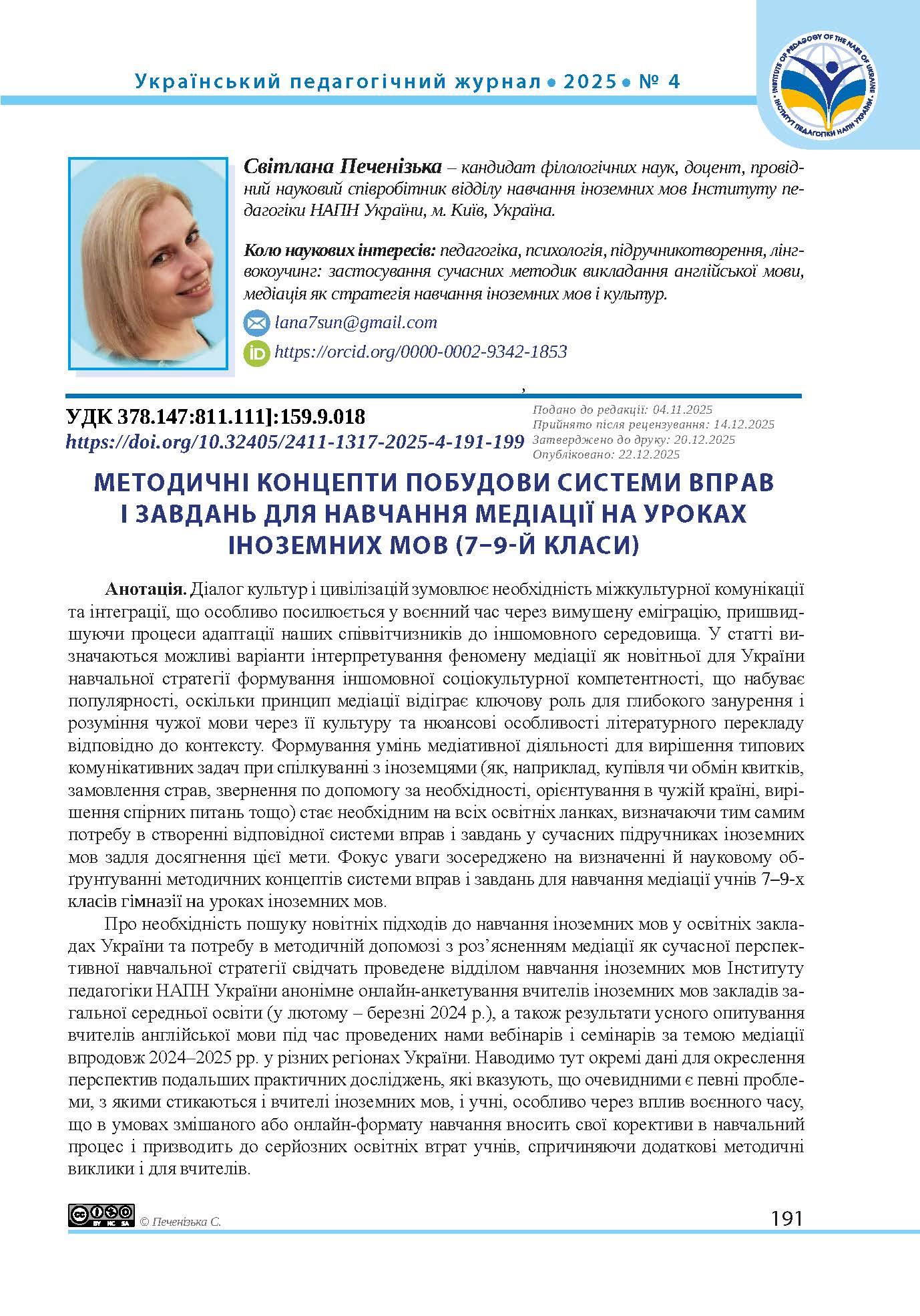 Redko, V. H., & Pasichnyk, O. S. (2023) Mediatsiia yak vyd navchalnoi diialnosti u protsesi formuvannia v uchniv dosvidu inshomovnoi komunikatyvnoi vzaiemodii. In Navchannia inozemnykh mov u himnazii: Zbirnyk metodychnykh materialiv dlia vchyteliv inozemnykh mov, pp. 48–54. Ternopil: Libra Terra (in Ukrainian).
